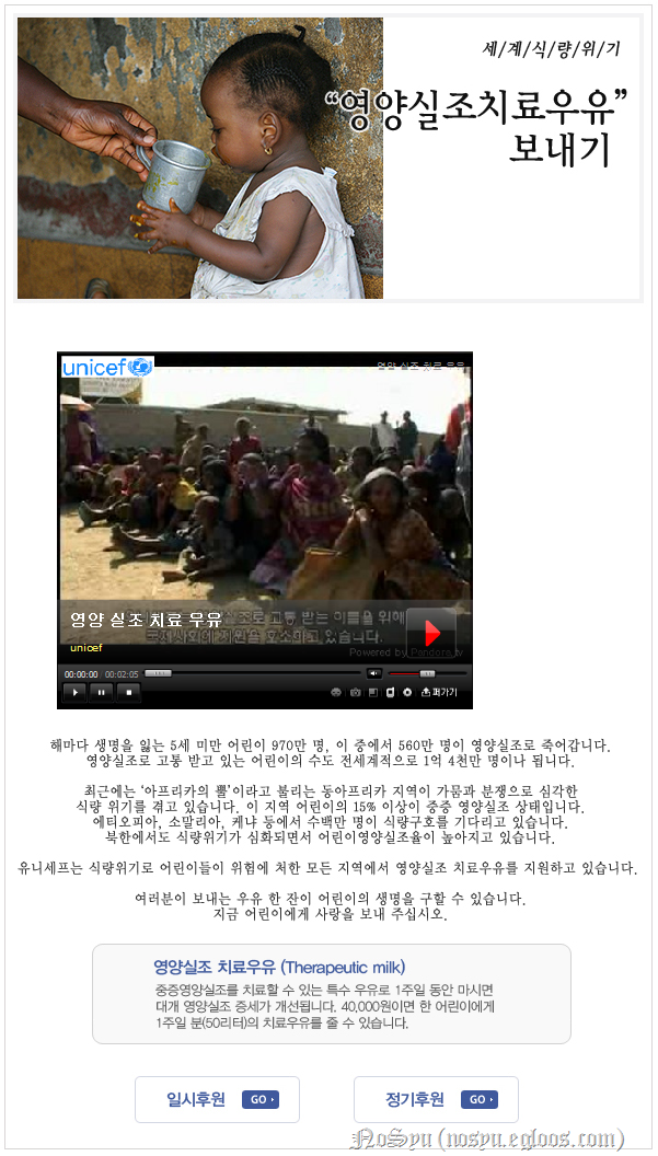 거기에 영양실조치료우유보내기에 후원한다고 적혀있더라구.