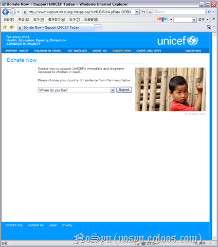 먼저 유니세프 홈페이지가 맞는지 확인해보고자 공식 사이트를 찾아갔어.