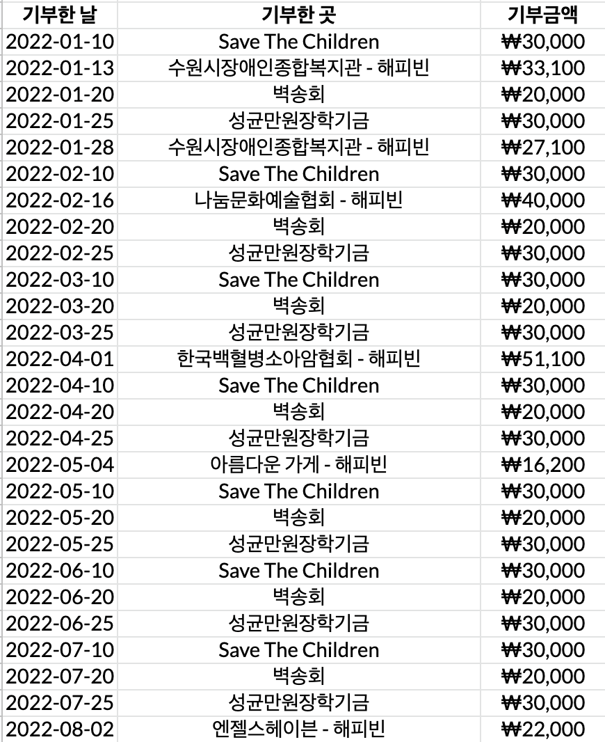무언가 생일마다 정리하는 기부금 얘기도 이번에는 특별한 것이 없는 것 같구나
